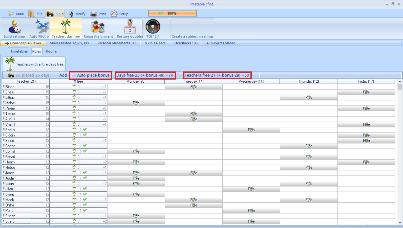 Teachers daily free has always been a problem to be placed. Now with the auto placement it shows the days available and then you can click the best day to place. Must Days can be locked.